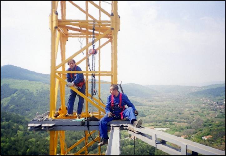 Sidranje žerjava 112EC-H8 na steber viadukta »ČRNI KAL«.