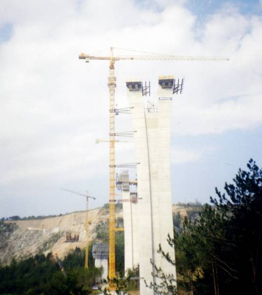 Žerjav 112EC-H8 z višino do kavlja več kot 100m na viaduktu »ČRNI KAL«.