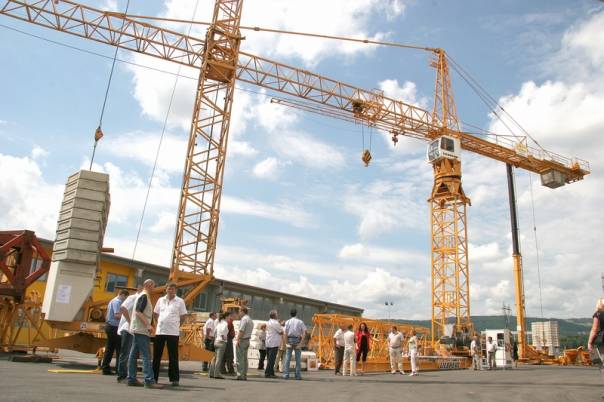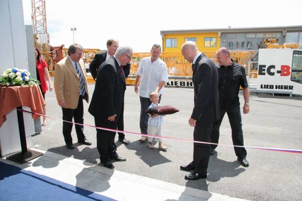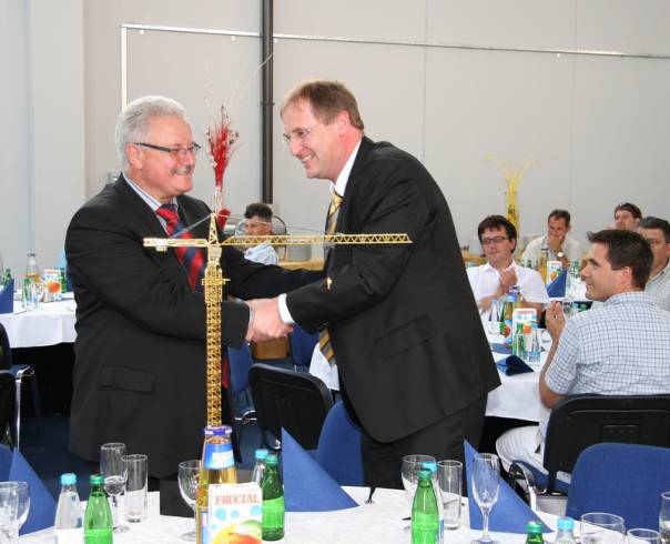 Čestitke ob predaji pozlačenega žerjava s strani LIEBHERR-ja. |